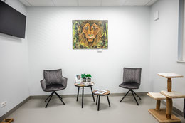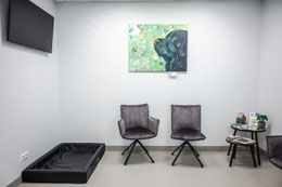 Separater Wartebereich für Hunde – mit mehr Platz und tiergerechter Atmosphäre, um Stress zu vermeiden.